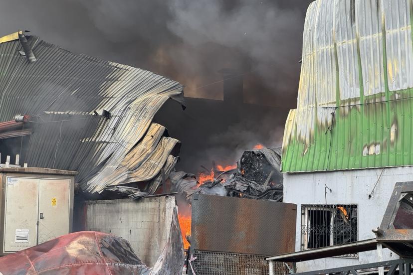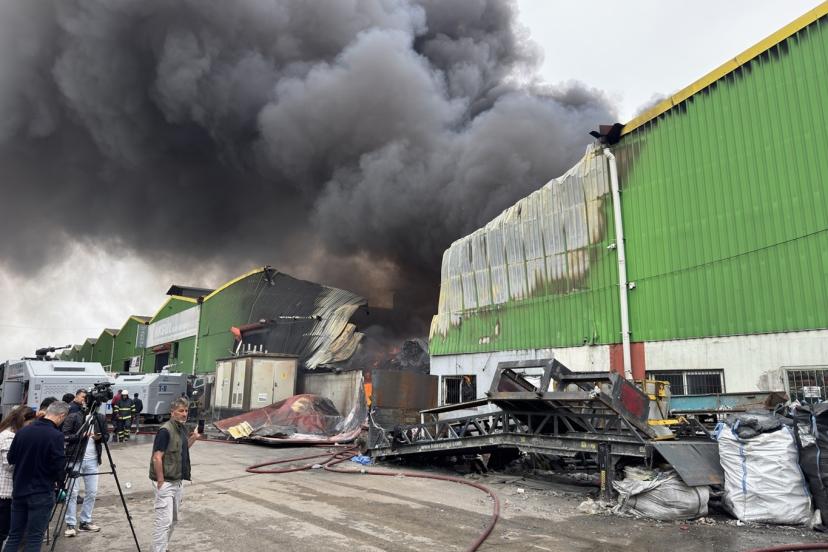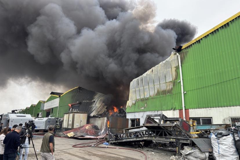 Sarıhamzalı Mahallesi'ndeki geri dönüşüm tesisinde henüz belirlenemeyen nedenle yangın çıktı.