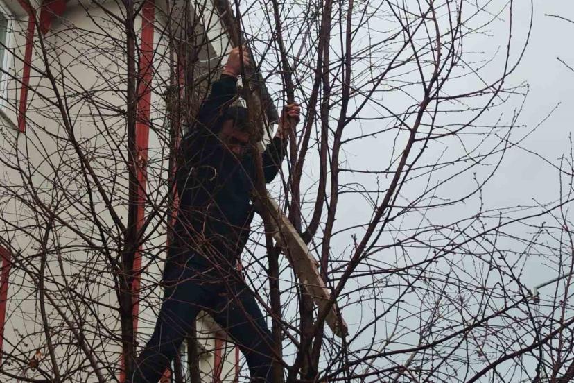 Ağaçta mahsur kalan kediye zabıtadan kurtarma operasyonu