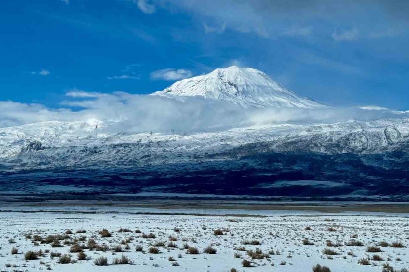"Türkiye’nin çatısı" olarak bilinen Ağrı Dağı, zirvesindeki beyaz örtüsüyle göz kamaştırıyor.