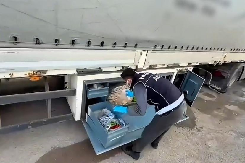 Ekiplerce il merkezinde durdurulan çekici ve dorsede gerçekleştirilen aramada, tüpler içerisine gizlenmiş toplam 108 paket halinde 8 kilo 300 gram metamfetamin bulundu.