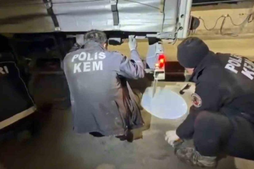 Ekiplerce takibe alınan çekici ve dorsesinde yapılan aramada, 2 paket halinde toplam 1 kilo 220 gram skunk maddesi bulundu.