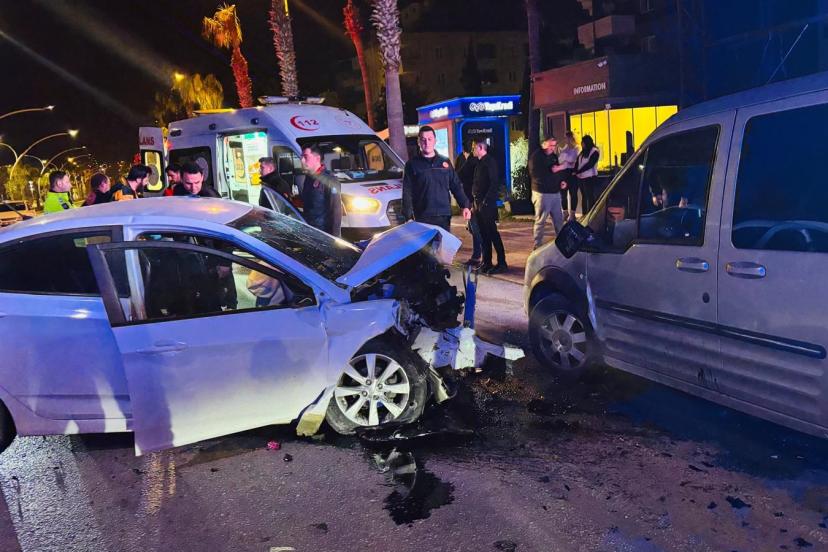 Kaza saat 04.00 sıralarında Oba Mahallesi'nde meydana geldi. Seyir halinde olan Danimarka uyruklu A.G'nin (26) kullandığı 07 AGZ 441 plakalı otomobil, F.Ç. (26) idaresindeki 23 FC 379 plakalı otomobil ile çarpıştı. Kazayı görenlerin 112 Acil Çağrı Merkezi'ne ihbarda bulunması üzerine kaza yerine polis ve sağlık ekipleri sevk edildi. Kazada her iki otomobilin sürücüsü ile 23 FC 379 plakalı otomobilde yolcu olarak bulunan R.G.A. (22) yaralandı. Yaralılar olay yerinde yapılan ilk müdahalenin ardından çevredeki hastanelere kaldırıldı.