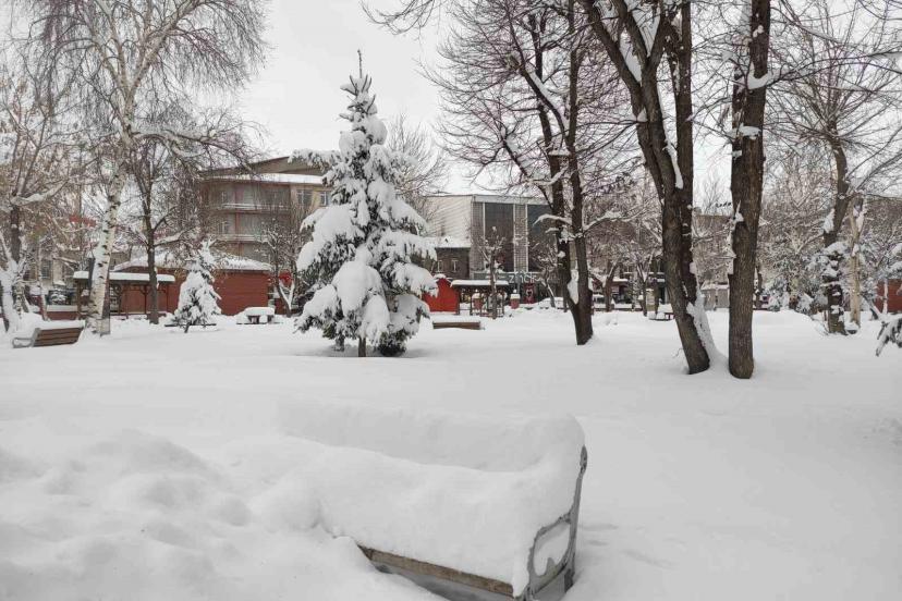 Ardahan kent merkezi nisan ayında etkili olan kar yağışıyla beyaza büründü.