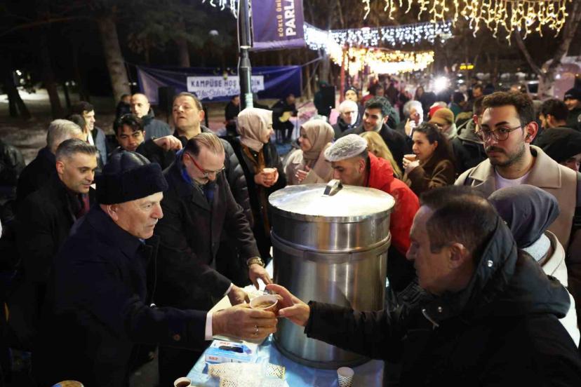 Ramazan ayının birlik, beraberlik ve paylaşma ruhunu yaşatmayı hedefleyen alanda her akşam iftar sonrası düzenlenen çay ve tatlı ikramları, samimi sohbetlerle buluşarak kampüste sıcak bir Ramazan atmosferi oluşturuyor.
