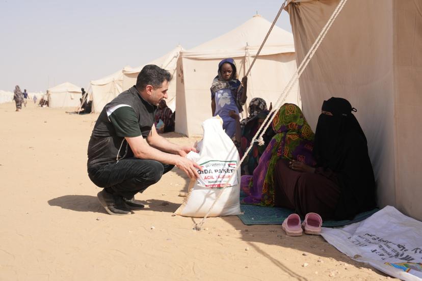 Şişman, "Avrupa Yetim Eli olarak Sudan'dayız. Şu an başkentten 600 kilometre uzaklıkta bulunan Atbara kampındayız. Hayırseverlerimizin emanetlerini, savaştan kaçarak buraya sığınan ihtiyaç sahibi kardeşlerimize ulaştırıyoruz." dedi.