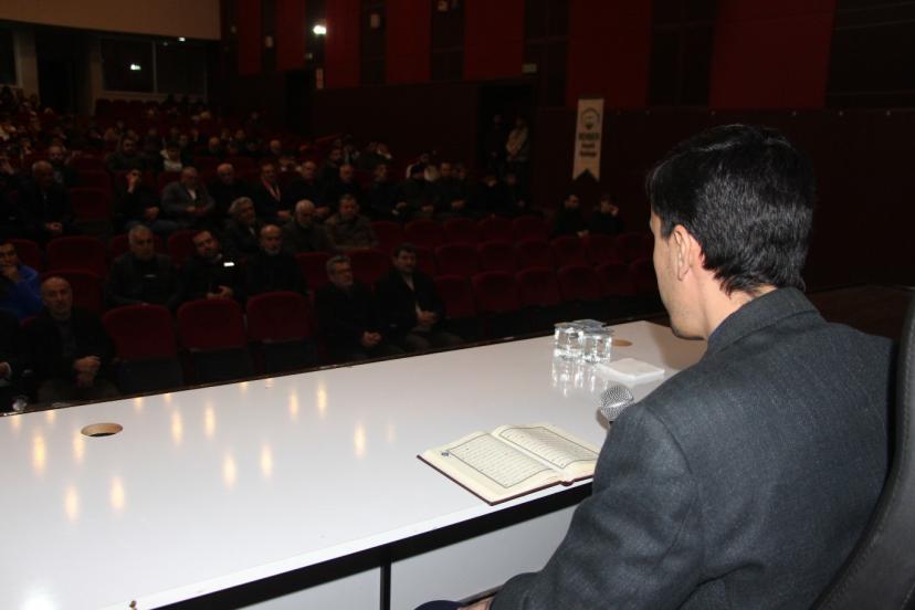Şehadetin, herkesin elde edeceği bir makamın olmadığını dile getiren Aydın, “Şubat ayında özelde anlam ifade etsin diye bir ayın tamamını konuştuğumuz şehadet kavramı, İslami müesseseden başka hiçbir yerde yoktur. Onun için bizim ülkemizde de en çok suistimal edilen bir mevzudur. Şehadet herkesin elde edeceği bir makam değildir. Alın teriyle değildir, bilek gücüyle değildir. Şehadet kimsenin dağıttığı bir makam değildir. Şehadet, Allah Azze ve Celle’nin nasip ettiği bir mertebedir. Biz yıllar sonra adını andığımız kişilere ‘şehit’ deriz. Eğer bugün bu meydanda yıllar önce vefat eden, Allah’ın davası aziz olsun diye mübarek kanlarını döken insanlardan bahsediyorsanız, o zaman onlar şehittir. Belki çocuklarımızın ismini daha çok koymamız lazım. Belki kızlarımıza daha çok ‘Şehadet’ ismini yakıştırmamız lazım. Belki gençlerimizin bunu daha çok tefekkür etmesi gereklidir.” dedi.