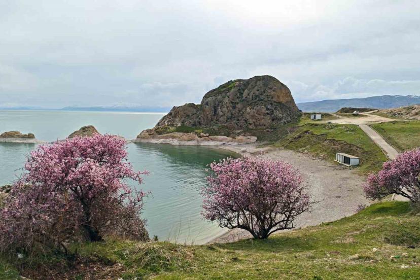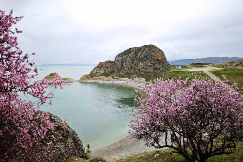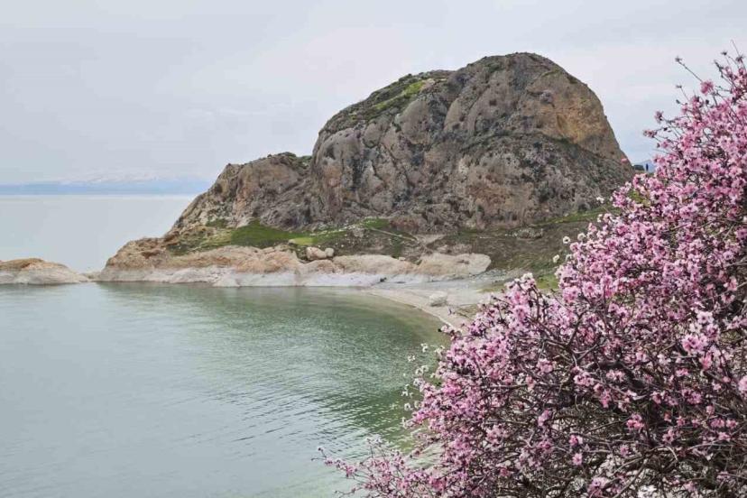 Badem çiçekleri Van Gölü kıyılarını renklendirdi