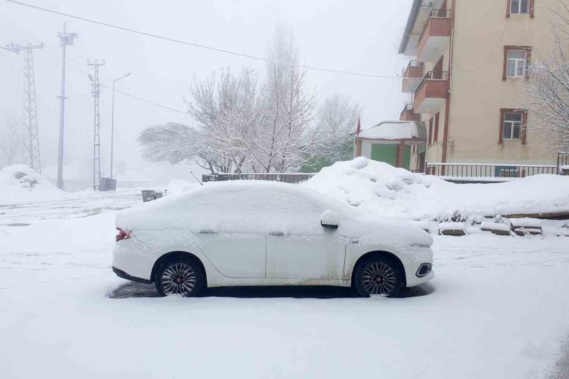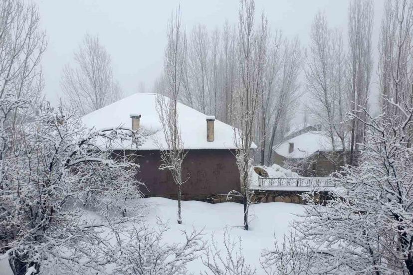Van’ın Başkale ilçesinde etkili olan kar yağışı nedeniyle her yer beyaza büründü.