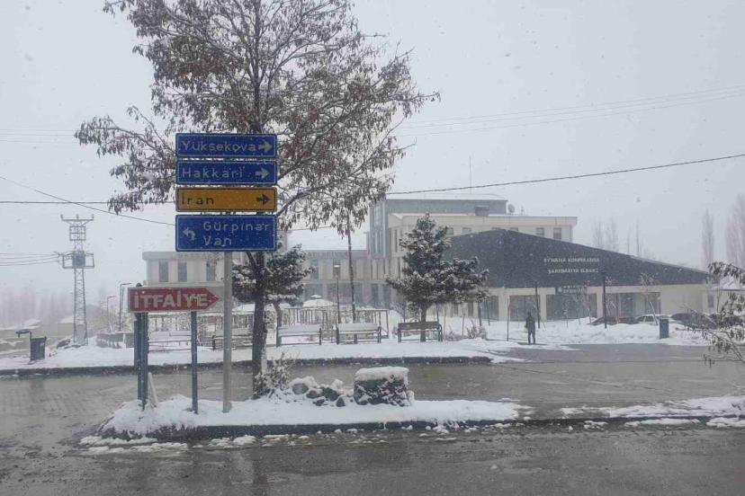 Van’ın Başkale ilçesinde etkili olan kar yağışı nedeniyle her yer beyaza büründü.