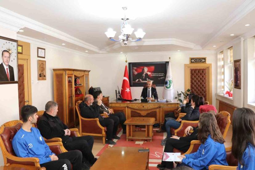 Oltu Belediye Başkanı Adem Çelebi, bölge birincisi olan Oltu ilçesi Yusuf Ziya Bey Anadolu Lisesi Genç A Floor Curling takımını makamında kabul etti.
