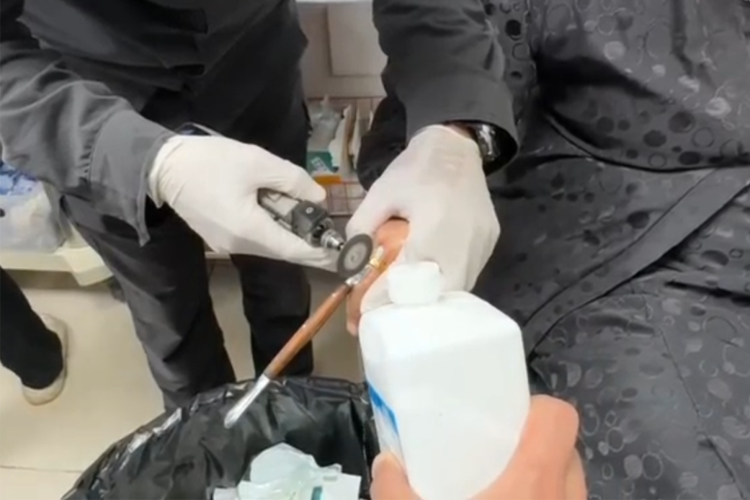 Durumun bildirilmesi üzerine hastaneye gelen itfaiye ekipleri, dikkatli çalışma sonucu parmağa sıkışan yüzüğü keserek çıkardı.