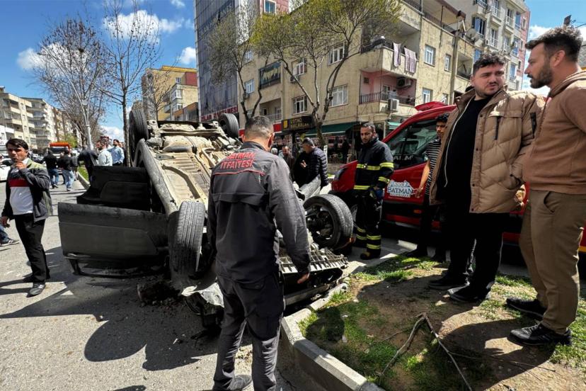 Batman'da seyir halindeki bir otomobil, sokaktan çıkan başka bir otomobile çarptı. Çarpışmanın etkisiyle takla atan her iki araçta buluna 2 kişi yaralandı.