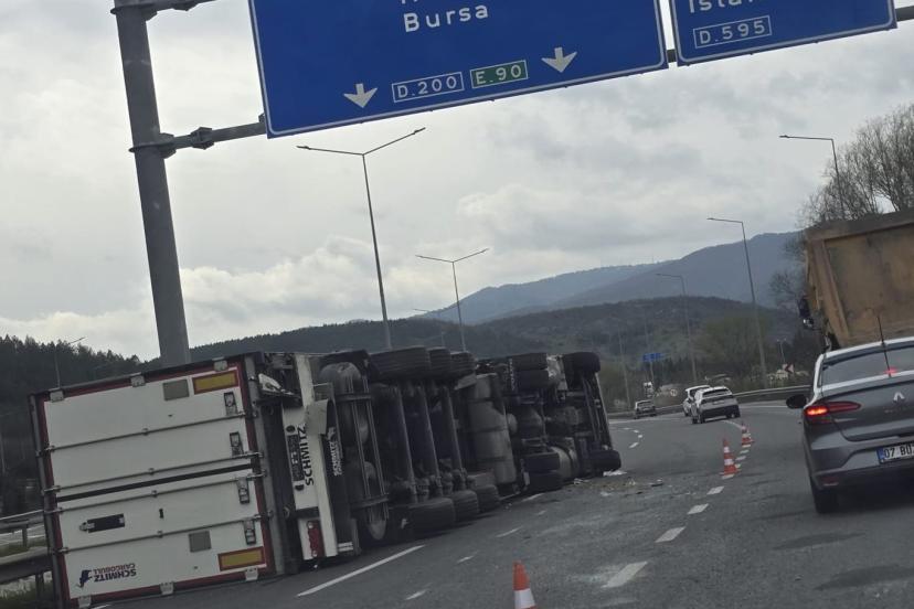 Bozüyük-Bilecik yol ayrımı mevkiinde seyir halinde olan tır, sürücüsünün direksiyon hakimiyetini kaybetmesi sonucu kontrolden çıkarak yan yattı.