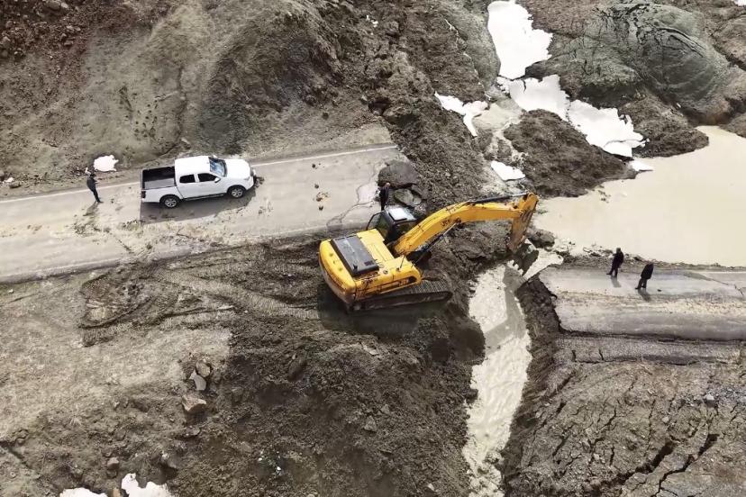 Bingöl’de heyelan sonucu çöken ve kayan grup yolunda ekiplerin çalışması başladı.