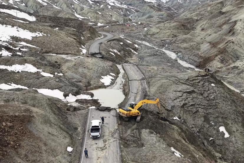 Bingöl’de heyelan sonucu çöken ve kayan yolda çalışmalar başladı