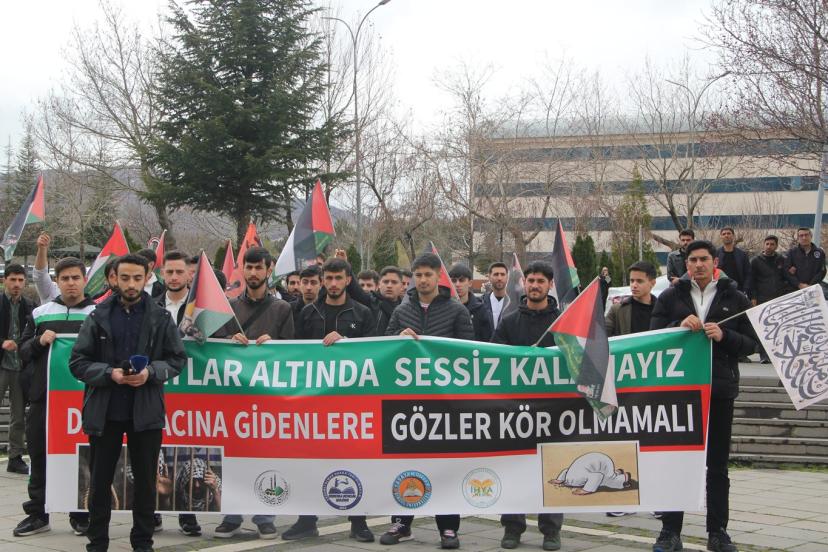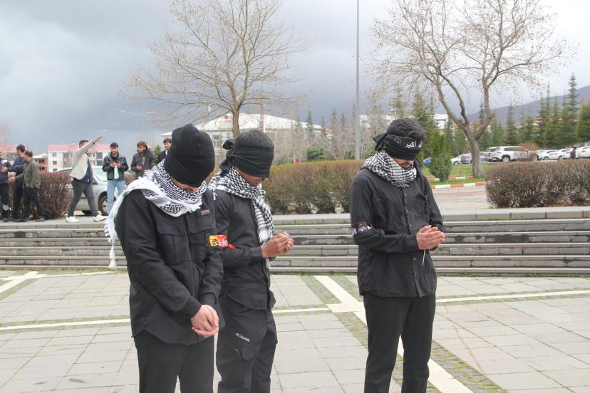 Bingöl Üniversitesi Erdemli Gençlik Kulübü üyesi gönüllüler ve çok sayıda öğrenci, Filistinli esirlere yönelik idam kararını kınamak amacıyla bir araya geldi.