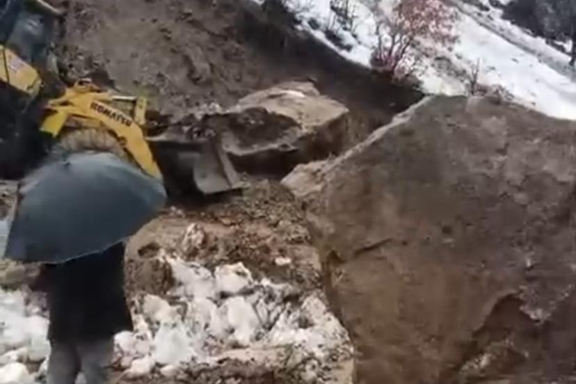 Yollara düşen kaya ve toprak birikintileri iş makineleri yardımıyla temizlenirken, çığ gelen bölgelerde de gerekli müdahaleler yapılıyor.