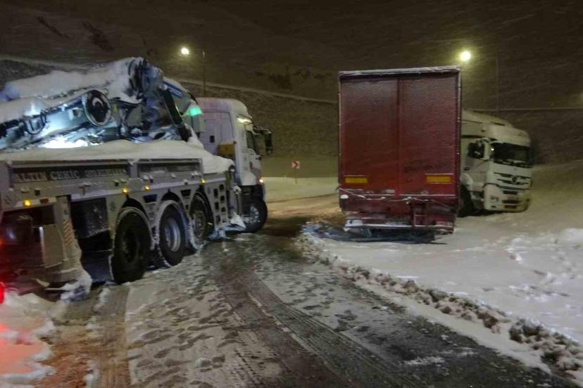 Edinilen bilgilere göre, kar ve buzlanmanın etkili olduğu Bitlis-Baykan karayolunda seyir halinde olan tır, virajı dönmeye çalıştığı sırada kontrolden çıkarak yol üzerinde yan döndü. Olayın ardından bölgeye yardım için çağrılan çekici ise karla kaplı zeminde ilerlemekte zorlanarak kara saplandı. Kısa sürede olay yerine gelen trafik ekipleri, hem yan dönen tırı hem de kara saplanan çekiciyi kurtarmak için çalışma başlattı.