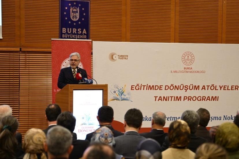 Türkiye Yüzyılı Maarif Modeli doğrultusunda öğretmenlerin mesleki gelişimlerini desteklemek amacıyla Bursa İl Millî Eğitim Müdürlüğü tarafından hayata geçirilen "Eğitimde Dönüşüm Atölyeleri" tanıtım programı, gerçekleştirildi.