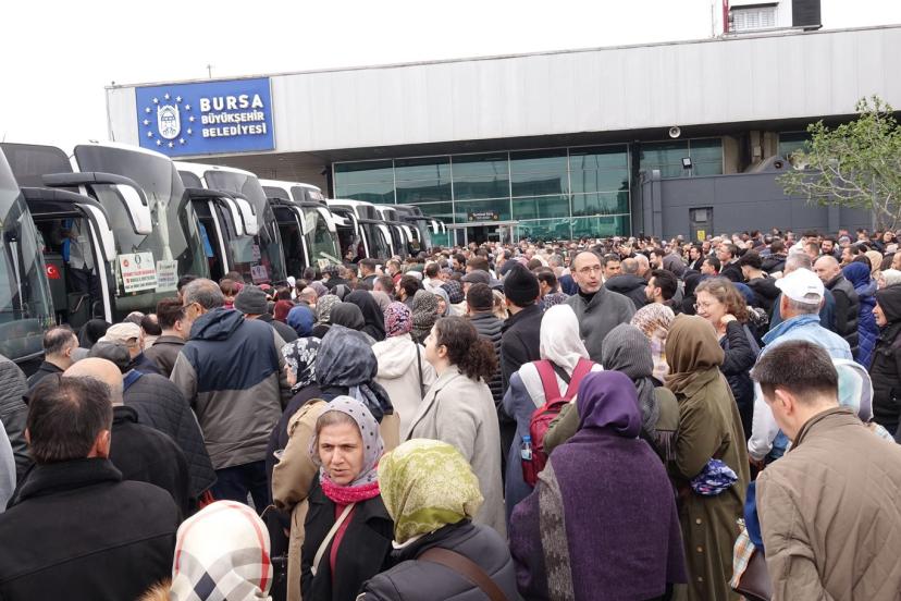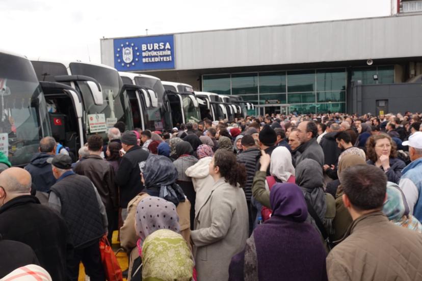 Bursa Şehirlerarası Terminali'nde Kur'an-ı Kerim tilavetiyle düzenlenen törene, hacı adaylarının aileleri ve vatandaşlar yoğun ilgi gösterdi. Bursa İl Müftüsü Yavuz Selim Karabayır, hacı adaylarına hitaben gerçekleştirdiği kısa konuşmanın ardından dua etti.