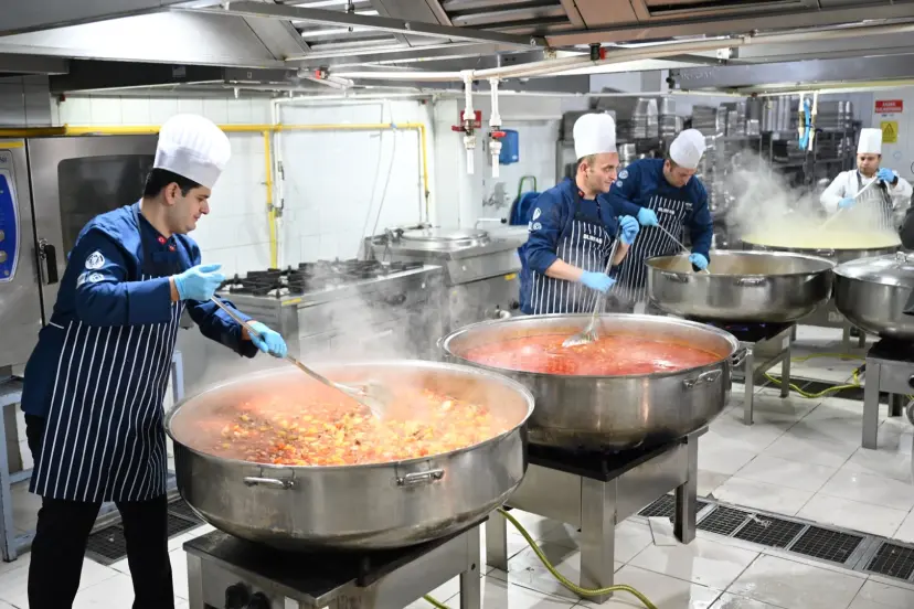 Hijyenik, steril ve titizlikle denetlenen üretim alanlarında hazırlanan yemekler ve tatlılar, ekipler tarafından sabit iftar noktalarına, Kent Lokantalarına ve ilçe iftar programlarına ulaştırılıyor.