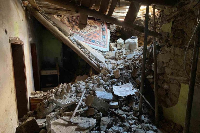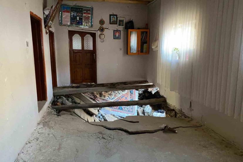 Van’ın Çatak ilçesinde 2 katlı evin toprak damı çöktü. Olay anında evde kimsenin bulunmaması muhtemel faciayı önledi.