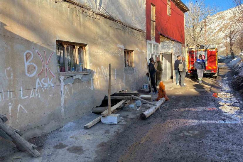 Çatak’ta 2 katlı evin toprak damı çöktü