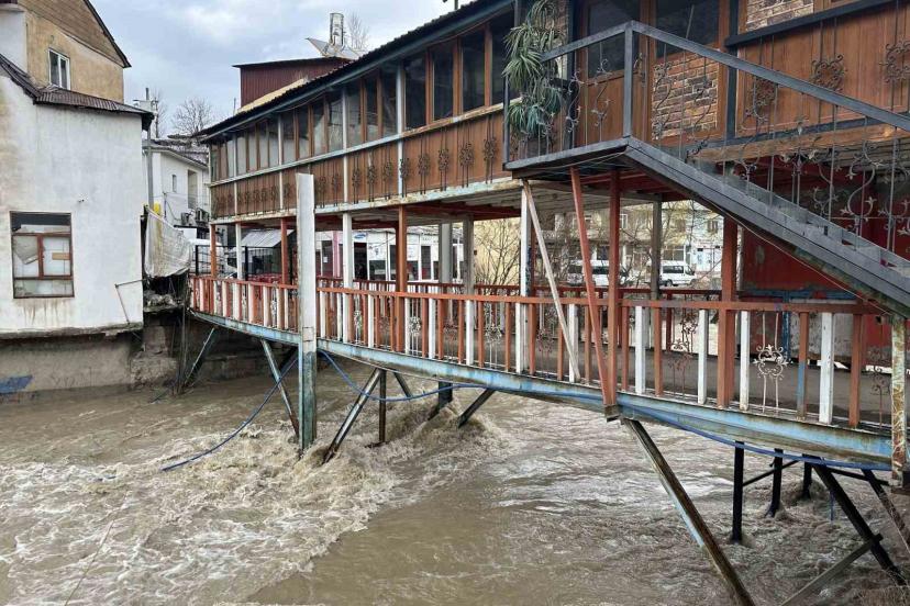Çatak’ta aşırı yağış nedeniyle köprü ve üstündeki kafe tedbiren kapatıldı