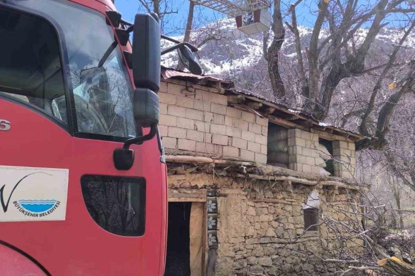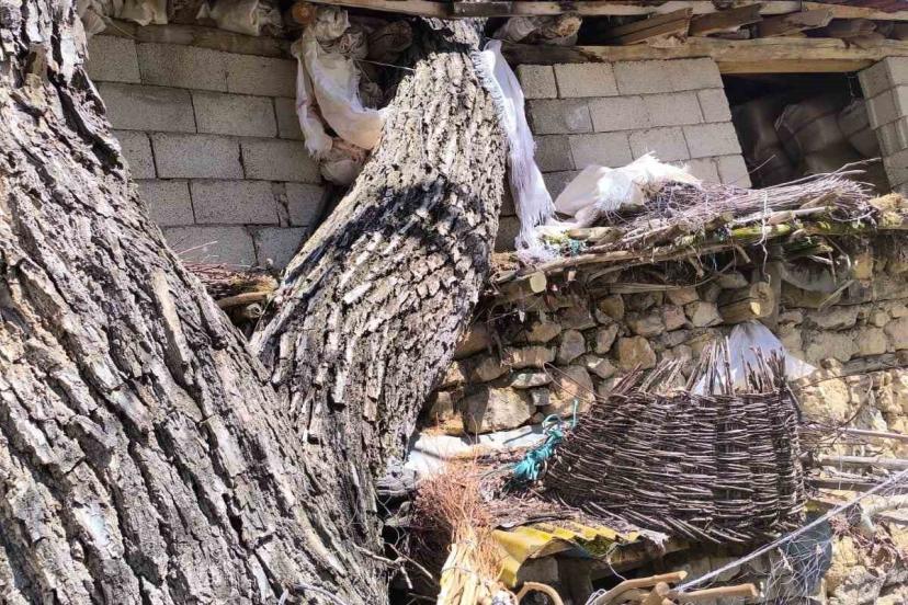 Çatak’ta ceviz ağacı ahırın üzerine devrildi