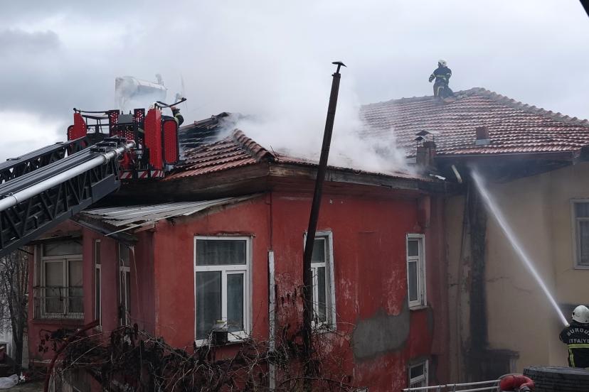 BURDUR'da 2 katlı evin çatısında başlayan yangın bitişikteki evlere sıçramadan söndürüldü.