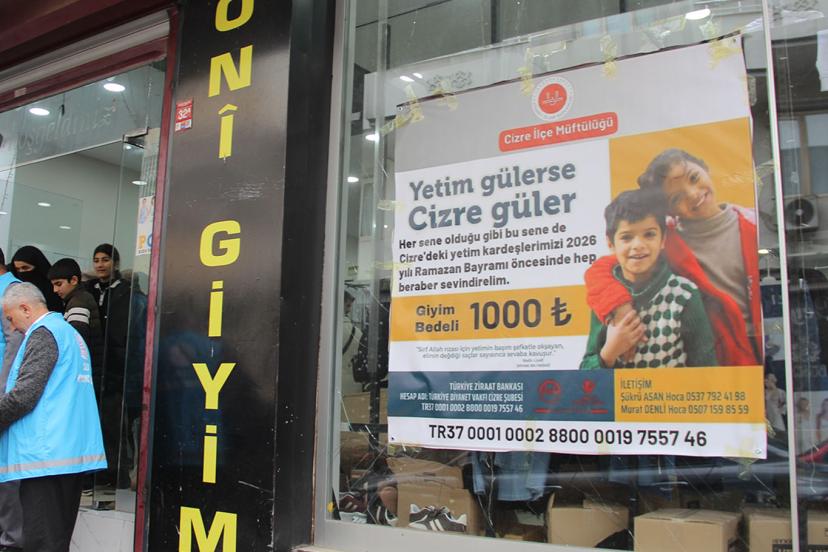 Şırnak’ın Cizre ilçe müftülüğü ve Türkiye Diyanet Vakfı’nın her bayram öncesi geleneksel hale getirdiği ve Cizreli hayırseverlerin de desteğiyle 10 yılında "Yetim gülerse Cizre güler" etkinliği ile bayram öncesi yetimlere giyim yardımı yapıldı.