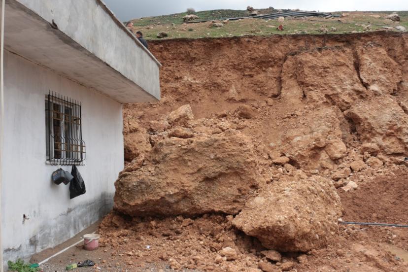 Şırnak Cizre'de sağanak yağış sonrası meydana gelen heyelanda, yamaçtan kopan dev kaya parçaları bir evi kullanılamaz hâle getirdi.