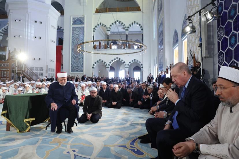 Cumhurbaşkanı Erdoğan, burada Aşr-ı Şerif okurken, reisülkurra Mustafa Demirkan törende dua etti.