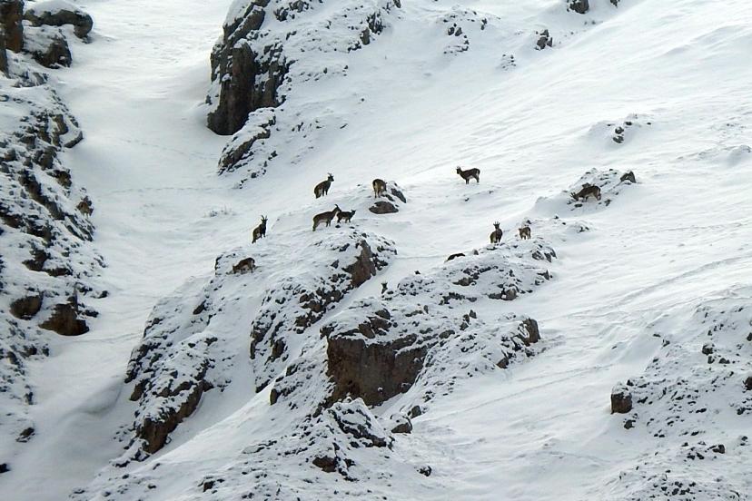 Erzincan ile Tunceli arasındaki platoda 130 kilometre uzunlukta batıdan doğuya uzanan Munzur Dağlarında çok sayıda dağ keçisi görüntülendi. 3 bin 300 rakımlı Munzur Dağlarının karlı zirvesinde ve zaman zaman da bin rakımlı aşağı kısımlara inen çengel boynuzlu (şamua) ve dağ keçileri sürüler halinde görüntülendi. Dağ keçileri, karlar üzerinde bir süre gezinip gözden kayboldu.