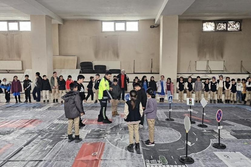 Kars’ın Digor ilçesinde Digor İlçe Emniyet Amirliği Trafik Denetleme Büro Amirliği tarafından Öğretmenevi Spor Salonu’nda gerçekleştirilen etkinlikte, Atatürk İlk ve Ortaokulu öğrencileri trafik kuralları konusunda bilgilendirildi.