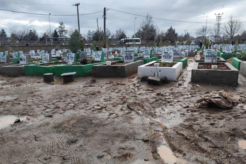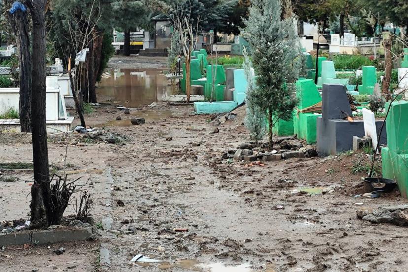 Diyarbakır’da Yeniköy Mezarlığı çamur deryasına döndü