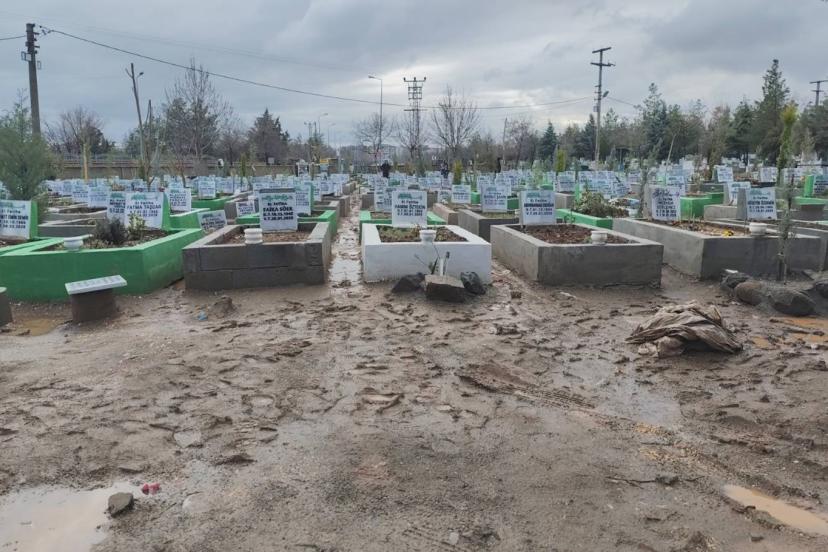 Özellikle Ramazan Bayramı dolayısıyla kabir ziyareti yapmak isteyen vatandaşlar, çamur nedeniyle mezarlık içerisinde yürümekte güçlük çekti.