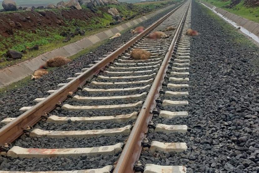 Diyarbakır'ın Çınar ilçesinde yük treninin koyun sürüsüne çarpması sonucu koyunlardan 5'i telef oldu, 2 tane de yaralandı.
