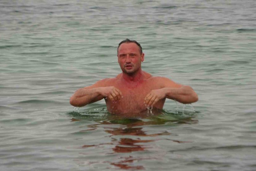 "Türkiye’ye denizi sevdiren adam" olarak bilinen sosyal medya fenomeni Aydın Aydıner, ekip arkadaşlarıyla birlikte şubat ayının dondurucu soğuğunda Van Gölü’ne girdi.