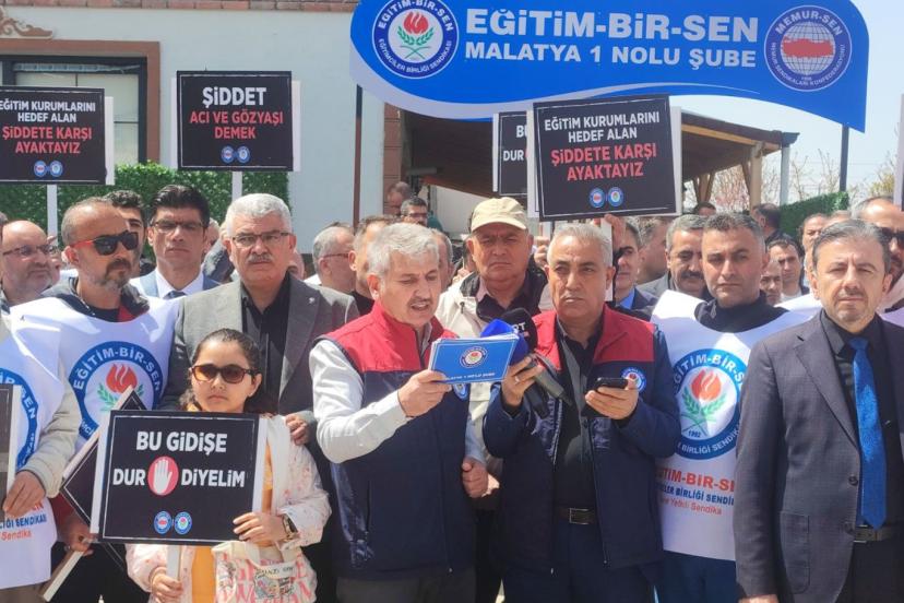 Kitle adına basın açıklamasını okuyan Eğitim-Bir-Sen Malatya 1 No'lu Şube Başkanı Hüseyin Söylemez, Siverek'te bir okula yönelik gerçekleştirilen saldırı ve artan şiddet olaylarına tepki göstermek amacıyla Türkiye genelinde olduğu gibi Malatya'da da bir gün iş bırakma kararı aldıklarını ve kitlesel basın açıklaması düzenlediklerini bildirdi.
