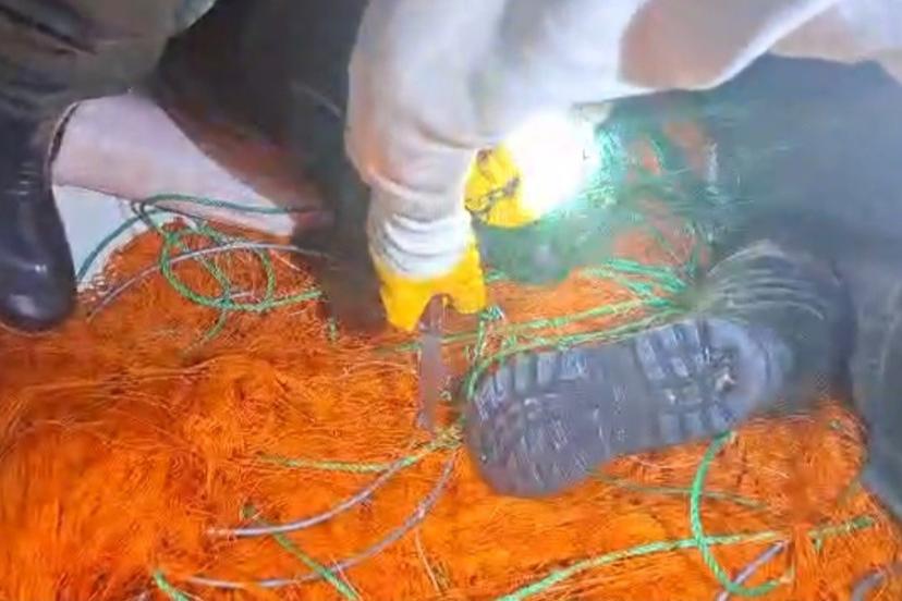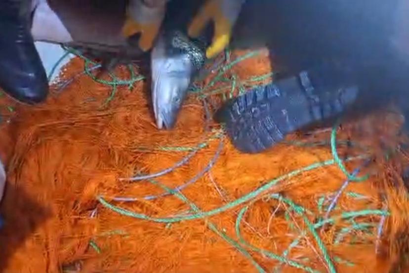 Elazığ’da yapılan denetimlerde kaçak avcılara ait 300 metrelik ağ ele geçirilirken, ağa takılan balıklar geri suya bırakıldı.