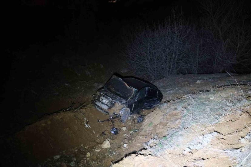 Elazığ’da sürücüsünün direksiyon hakimiyetini kaybettiği otomobil, şarampole uçtu.