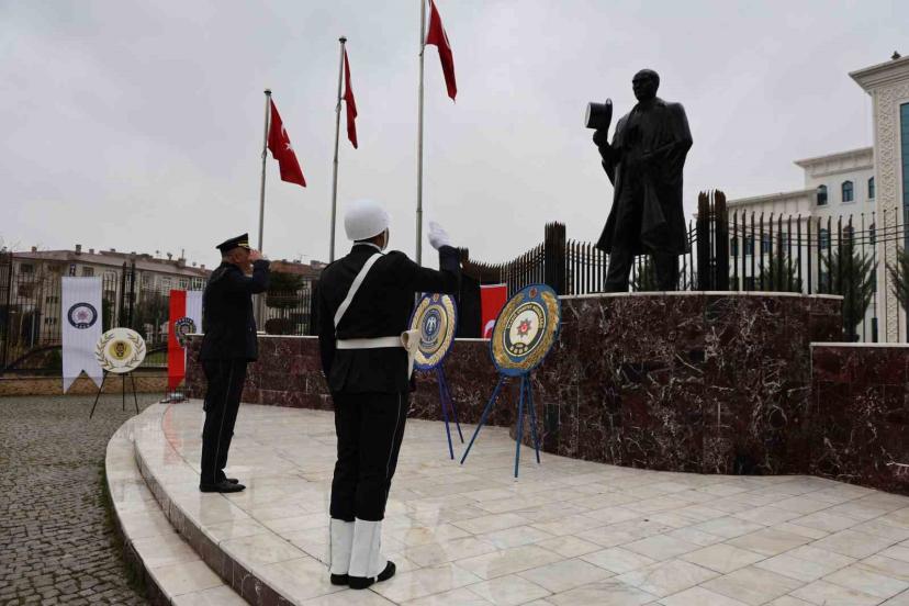 Elazığ’da Türk Polis Teşkilatı’nın 181’inci kuruluş yıl dönümü ve Polis Haftası, İl Emniyet Müdürlüğü’nce düzenlenen çeşitli programlar ile kutlandı. İlk olarak İl Emniyet Müdürü Adnan Karayel ve Zülfü Ağar Polis Meslek Eğitim Merkez Müdürü Hakan Berber, yardımcıları ve personelin katılımıyla Atatürk Anıtı’na çelenk bırakıldı. Ardından Karayel ve beraberindekiler Vali Numan Hatipoğlu’nu ziyaret etti.