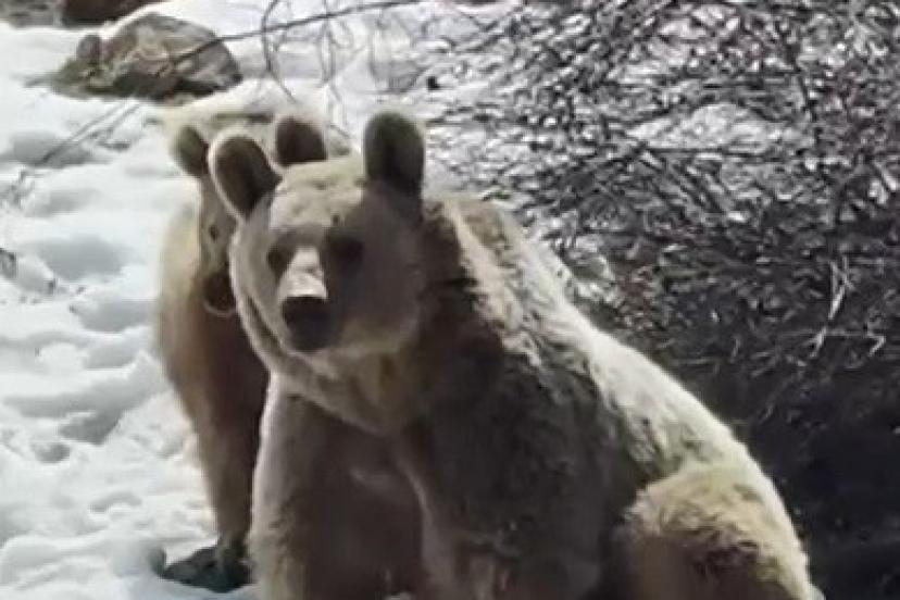 Erzincan’da kış uykusundan erken uyanan ayılar, karla kaplı arazide oynarken görüntülendi.