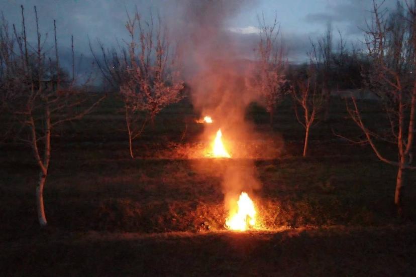 Baharın gelişiyle birlikte kayısı başta olmak üzere elma, kiraz ve diğer meyve ağaçlarının çiçek açtığı kentte, ani sıcaklık düşüşleri üreticileri endişelendiriyor. Gece boyunca bahçelerinde nöbet tutan çiftçiler, farklı noktalarda kontrollü ateşler yakarak oluşan ısı ve duman sayesinde ağaçların zarar görmesini önlemeye çalışıyor.