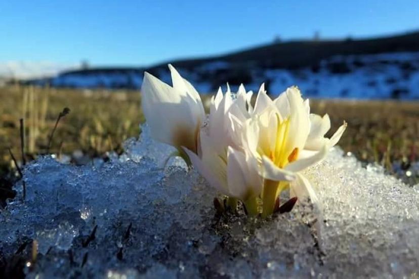 Erzincan’da son günlerde sıcak havanın etkisiyle yüksek kesimlerdeki kar kütleleri eriyerek yerini baharın müjdecisi kardelen çiçeklerine bıraktı.