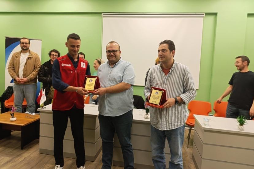 Bilim kafe etkinliği sonrasında Doğubayazıt Ahmed-i Hani Meslek Yüksekokulu Kızılay öğrenci Kulübü tarafından söyleşinin moderatörü ve organizasyonunu gerçekleştiren Öğr. Gör. Mustafa Bilirdönmez’e teşekkür plaketi takdim edildi.