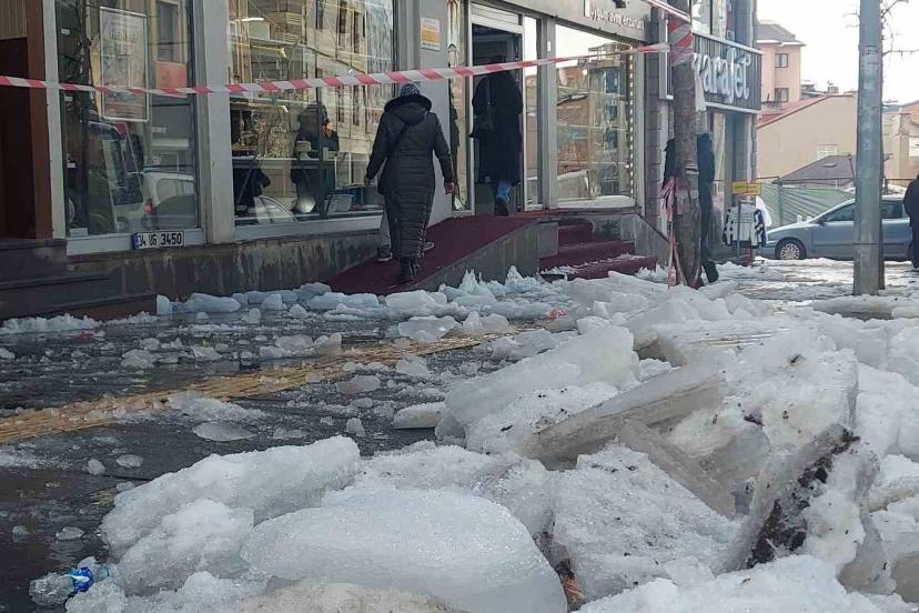Erzurum’da çatıdan düşen kar ve buz kütleleri tehlike saçıyor