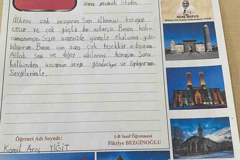 Erzurumlu minik yürekler Mehmetçiğe mektup yazdı