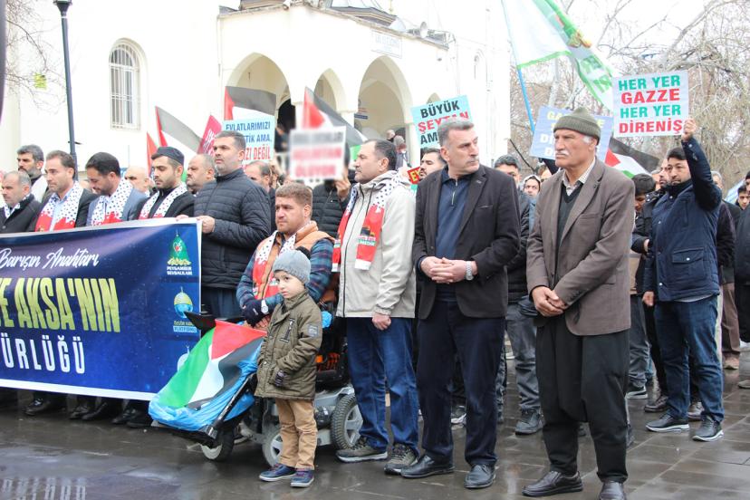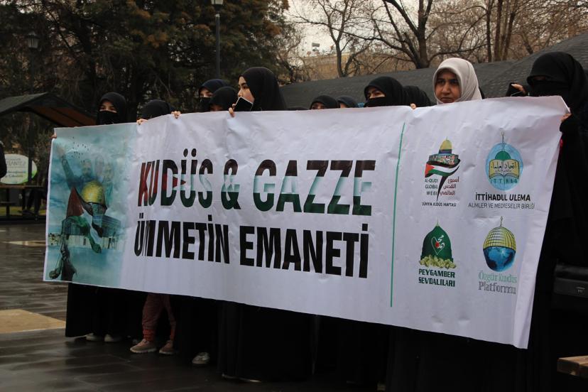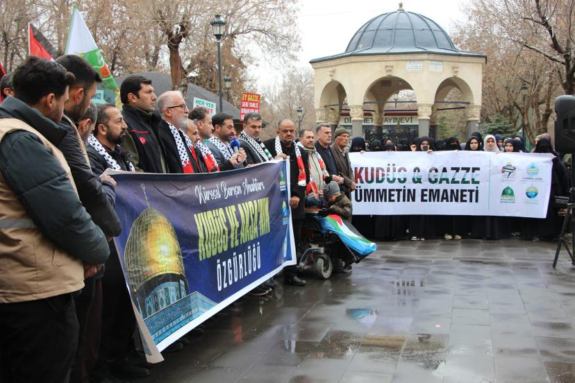 "Bugün burada sadece bir bölgenin değil, tüm insanlığın vicdan durağı olan Kudüs, Mescid-i Aksa ve Gazze’de yaşanan soykırıma dur demek; bu beldeleri elde etme adına siyonist yayılmacılığın küresel barışı nasıl bir uçuruma sürüklediğine dikkat çekmek ve İslam coğrafyasının dört bir yanında yakılan fitne ateşine karşı vahdeti haykırmak için toplanmış bulunmaktayız. Kudüs, yalnızca Filistin halkının değil, bütün Müslümanların ve bütün insanlığın ortak mirasıdır. Mescid-i Aksa ise Müslümanların ilk kıblesi ve mukaddes mabedlerinden biridir. Ancak bugün Kudüs, Mescid-i Aksa ve Gazze; siyonist işgal rejiminin sistematik saldırıları ve yayılmacı politikaları altında ağır bir kuşatma yaşamaktadır." dedi.